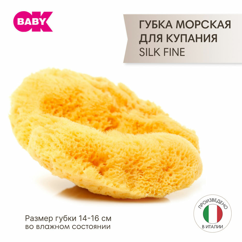 Натуральная губка для ванны OK Baby Silk Fine sea sponge р.16 желтый (38481600)