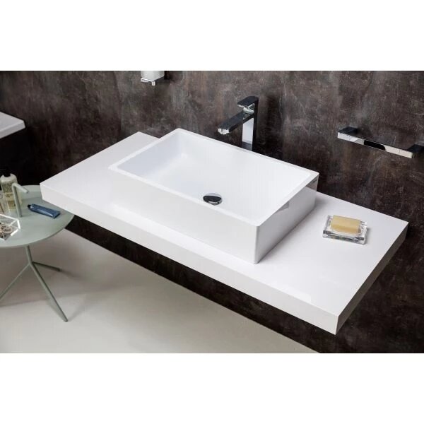 Универсальная столешница, подходящая под большинство умывальников. Представлена в трех цветах и трех материалах, поставляется без просверленного отверстия.
