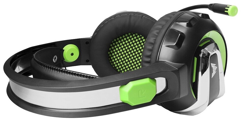 Проводная игровая компьютерная стерео гарнитура обладает продуманным ярким дизайном и высоким качеством звука. Встроенная звуковая карта с программным обеспечением дает возможность индивидуально настроить подходящее звуковое оформление. Функция Виброшок, срабатывающая при сильных НЧ звуках, значительно усиливает впечатления от динамичных моментов игры. Длинный гибкий кабель позволит расположить гарнитуру максимально комфортно без использования удлинителей.