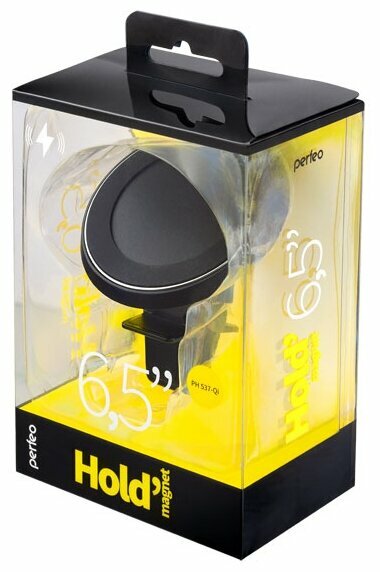 Perfeo-537-Qi Автодержатель + зарядка Qi для смартфона до 65"/ на воздуховод/ магнитный/ черный (PF_A4882)