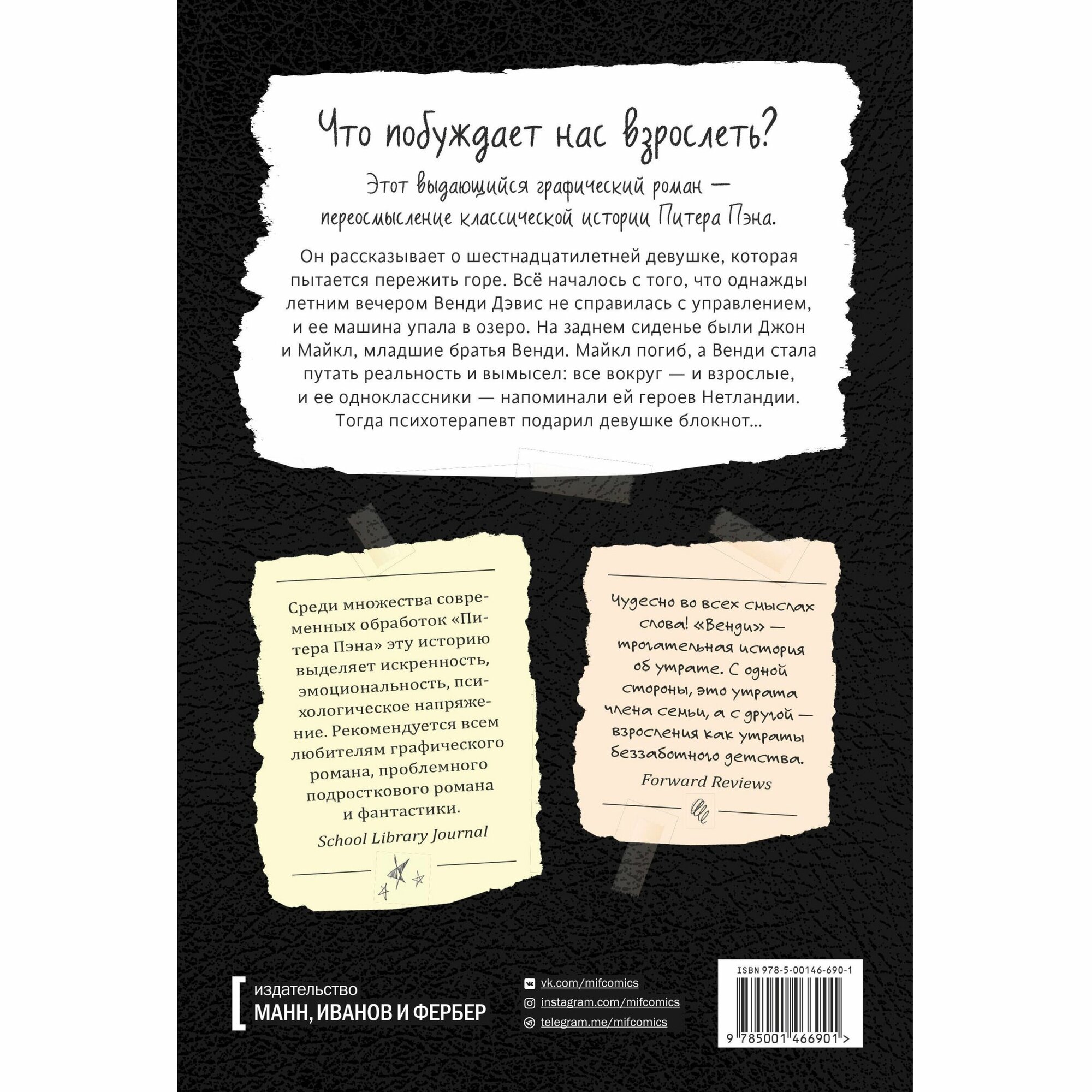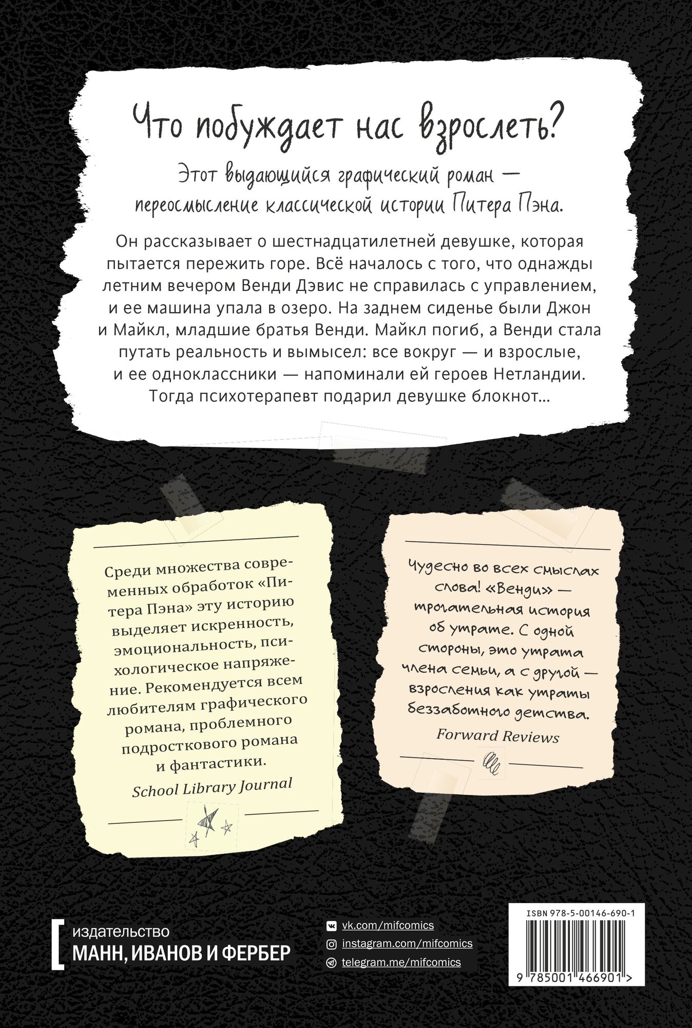 Графический роман “Венди” — это дневник шестнадцатилетней Венди Дэвис, которая по совету психотерапевта рисует, чтобы пережить утрату младшего брата.