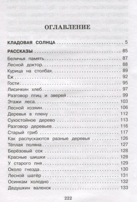 Сказка-быль "Кладовая солнца" (1945) учит читателя понимать, любить и беречь родную природу. В сборник также вошли рассказы М. Пришвина, написанные в разные годы для детей.