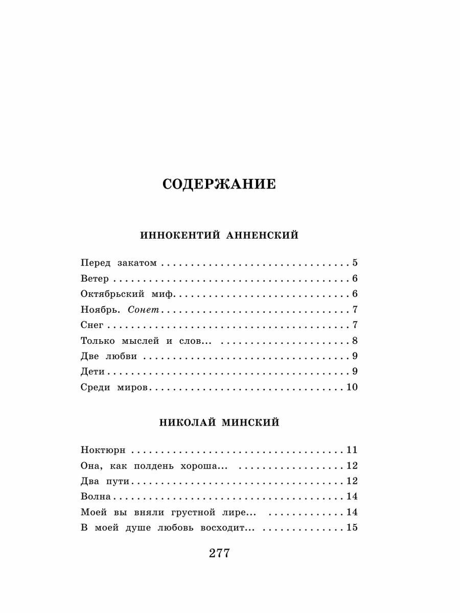 В книгу вошли стихотворения и поэмы русских поэтов Серебряного века разных поэтических направлений и течений: И. Анненского, К. Фофанова, Д. Мережковского, К. Бальмонта, В. Брюсова, А. Блока, А. Ахматовой, О. Мандельштама, М. Цветаевой и др.