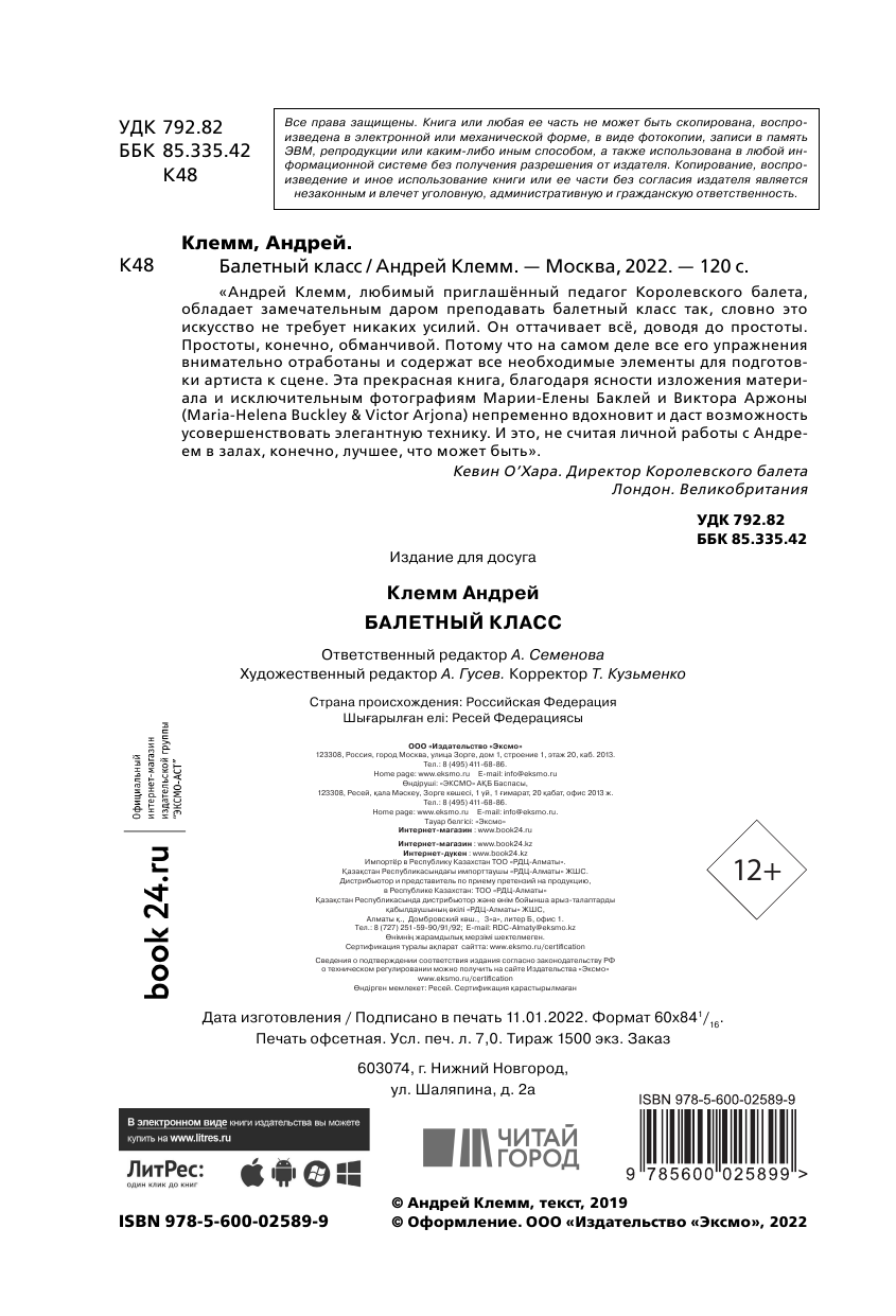 На сегодняшний день товар «Книга: Балетный класс (Клемм Андрей); ООО "Издательство "Эксмо", 2020» можно купить с кешбеком в 4 магазинах: Onliner BY, book24, Яндекс.Маркет, Буквоед