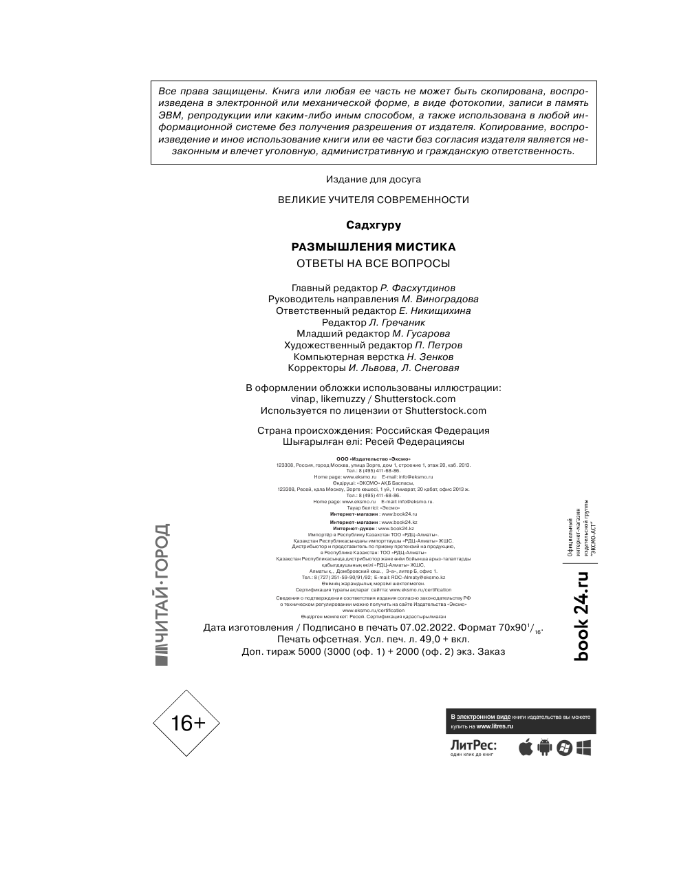 Размышления мистика. Ответы на все вопросы (бизнес) (Садхгуру); ООО "Издательство "Эксмо", 2020
