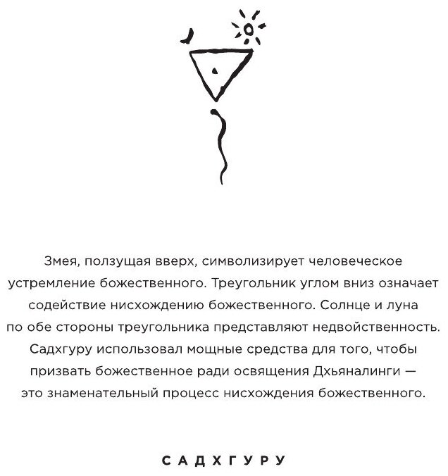 Книга содержит очень много мудрых мыслей и даёт ответы на многие вопросы. Замечательно, что Садхгуру делится своими знаниями и опытом. Я прочитала все переведённые книги и прослушала все выступления Садхгуру. И поэтому скажу, что они все не тянут до его публичных выступлений. Могу лишь процитировать его же самого: «Великолепие письменного слова - это лишь экскременты заблуждающегося ума».