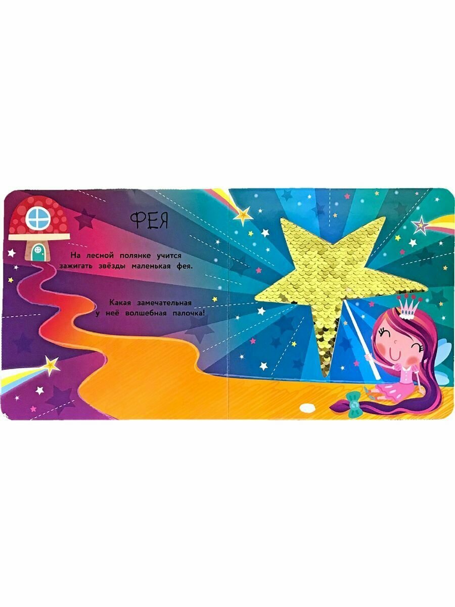 В этой необычной книжке с блестками малыша ждет встреча с жителями сказочного мира. Поздоровайтесь с ними и главное - не забудьте погладить! Если провести пальчиком по блесткам в другом направлении, они поменяют цвет.