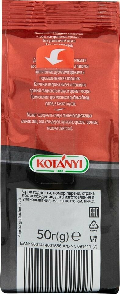 Для получения оригинального вкуса и аромата зрелые красные плоды паприки коптятся над дубовыми дровами и перемалываются в порошок. Копченая паприка имеет интенсивно пряный сладковатый вкус и аромат костра. Применение: для мясных и рыбных блюд, супов, а также соусов.
