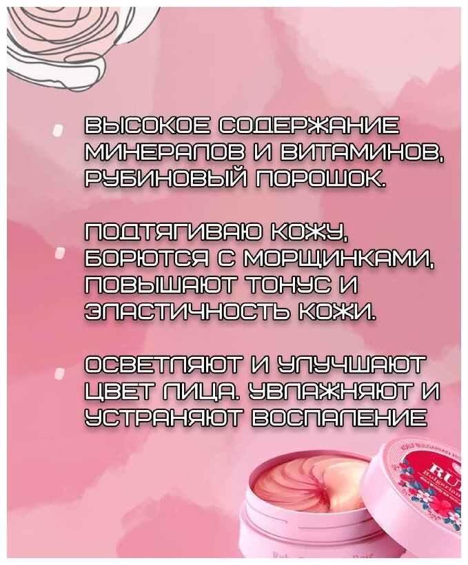 Petitfee Патчи для глаз гидрогелевые с маслом болгарской розы Koelf Ruby&Bulgarian Rose 60 шт (Petitfee ) (ПТФ_5)
