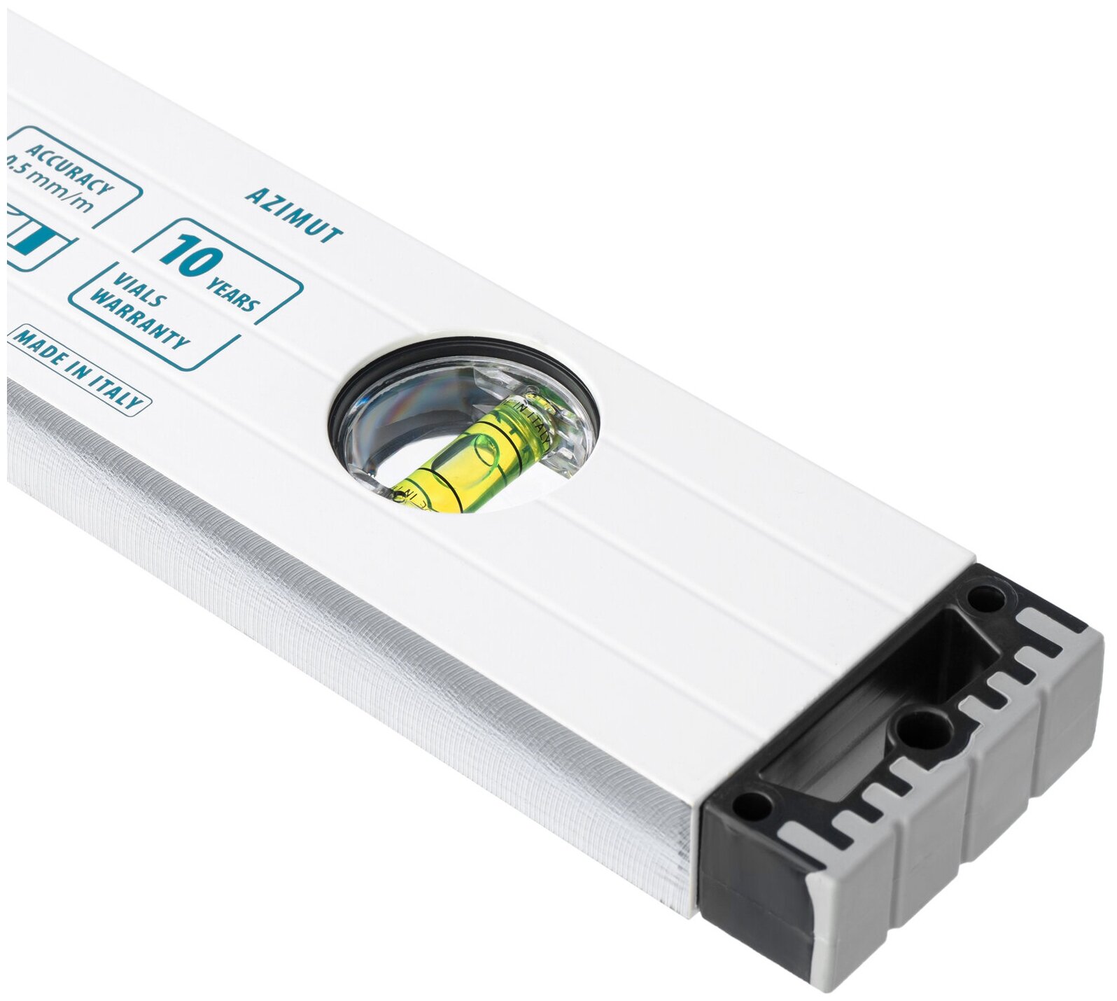 Уровень оснащен рукоятками и обрезиненными торцевыми заглушками.