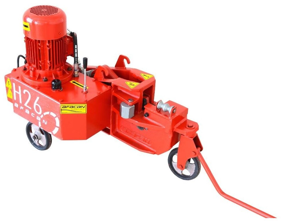 Гидравлический станок для резки арматуры Afacan H26 обеспечивает возможность резки арматуры до 26 мм в диаметре. Резчик может отрезать несколько прутов одновременно. Быстроту загрузки обеспечивают прокатные ролики. Электромагнитный пускатель защищает двигатель от перегрузок и воздействий электросети. Система автоматики станка состоит из высококачественных комплектующих и имеет ряд защитных электрических устройств. Принцип действия основывается на передаче гидравлического усилия поршня к ножам, что позволяет резать арматуру, квадратные и треугольные стальные прутья, а также металлические полосы. Может осуществлять нарезку нескольких плетей одновременно в зависимости от их класса.