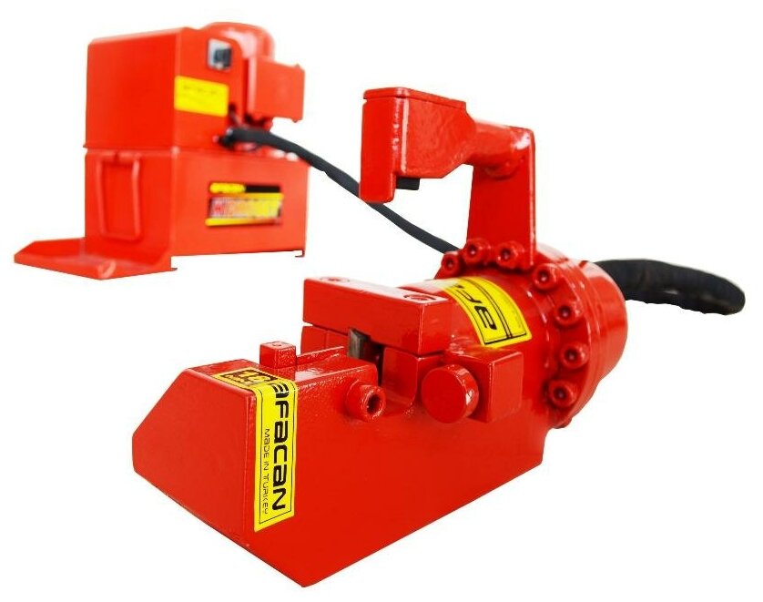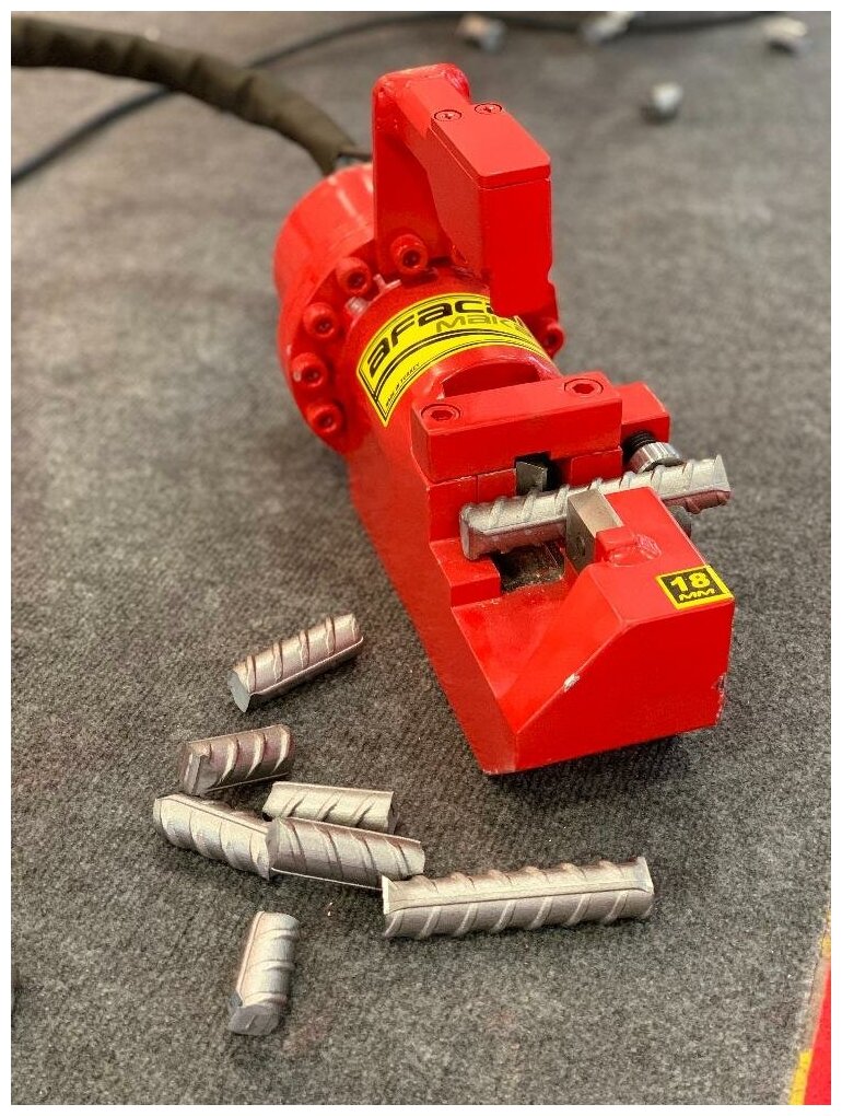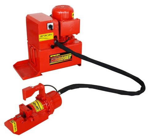 Гидравлический резчик HS18 выполнен в прочном и компактном корпусе. Имеет удобную вертикальную по длине рукоятку, с помощью которой его удобно удерживать и манипулировать двумя руками. Достоинство модели заключается в мобильности, легком весе и надежности гидравлической системы (устройство можно подключать к бытовой электросети 220 В). Система автоматики станка состоит из высококачественных комплектующих и имеет ряд защитных электрических устройств. Принцип действия основывается на передаче гидравлического усилия поршня к ножам, что позволяет резать арматуру, квадратные и треугольные стальные прутья, а также металлические полосы. Может осуществлять нарезку нескольких плетей одновременно в зависимости от их класса.