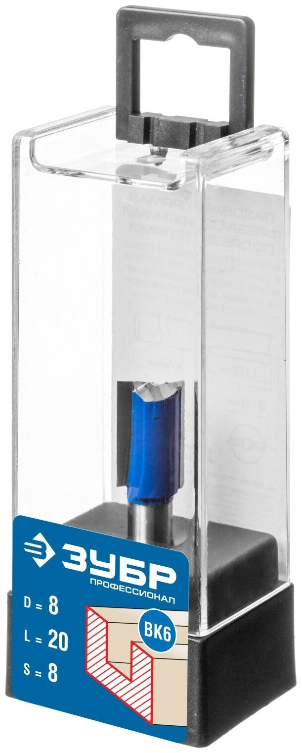Фреза пазовая прямая с нижними подрезателями, D= 8мм, рабочая длина-20мм, хв.-8 мм, ЗУБР Профессионал