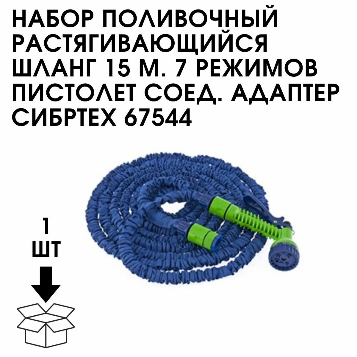 Шланг растягивающийся Сибртех 15 м 3/4" 7-реж. пистолет соед. адаптер предназначены для полива садовых и парковых участков. Включают в себя все необходимое для полива: шланг, переходники, 7 режимный пистолет-распылитель.