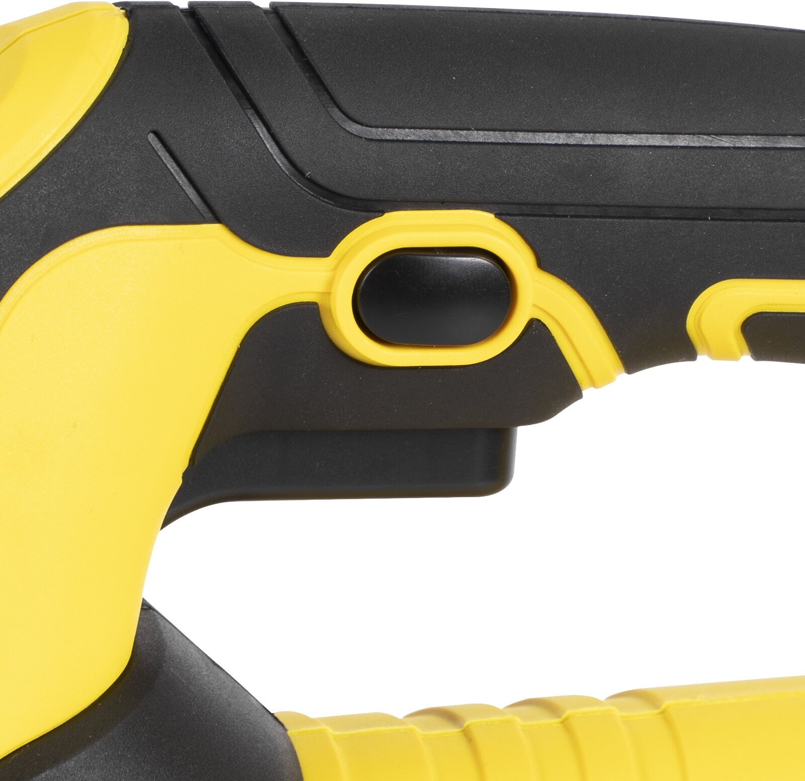 до розетки. Во время долгой работы фиксатор выключателя снижает утомляемость. Быстрозажимной патрон помогает менять пильные полотна, не используя ключи.