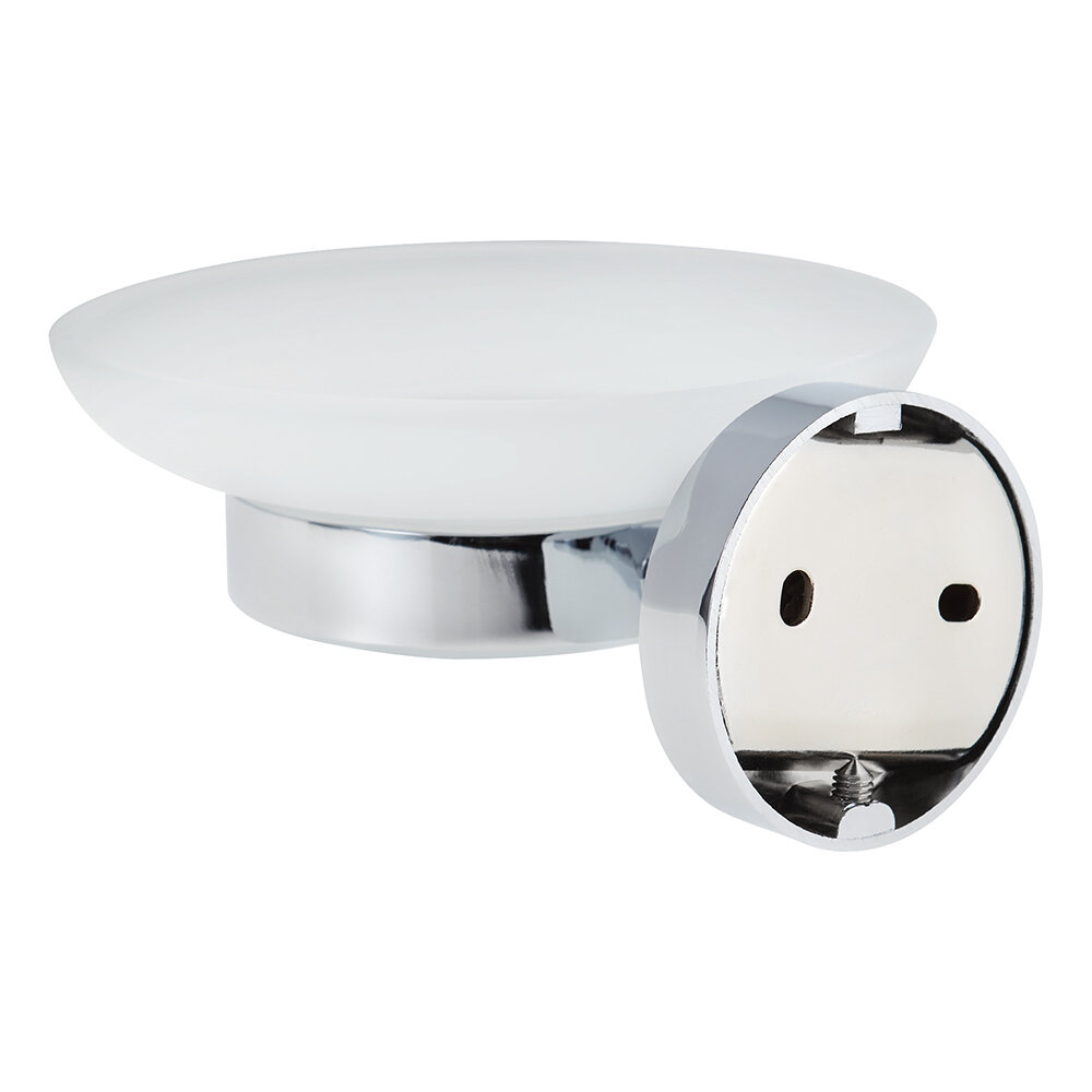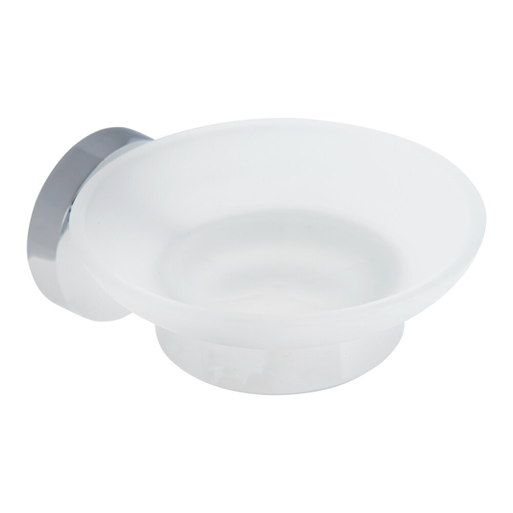 Увесистая стеклянная, качество на высоте, размеры как раз под средний кусок мыла. Ну и цена адекватная. Если регулярно протирать хром, будет долго выглядеть как новая, а запущенные разводы от нашей жесткой воды можно удалить только спецсредствами.