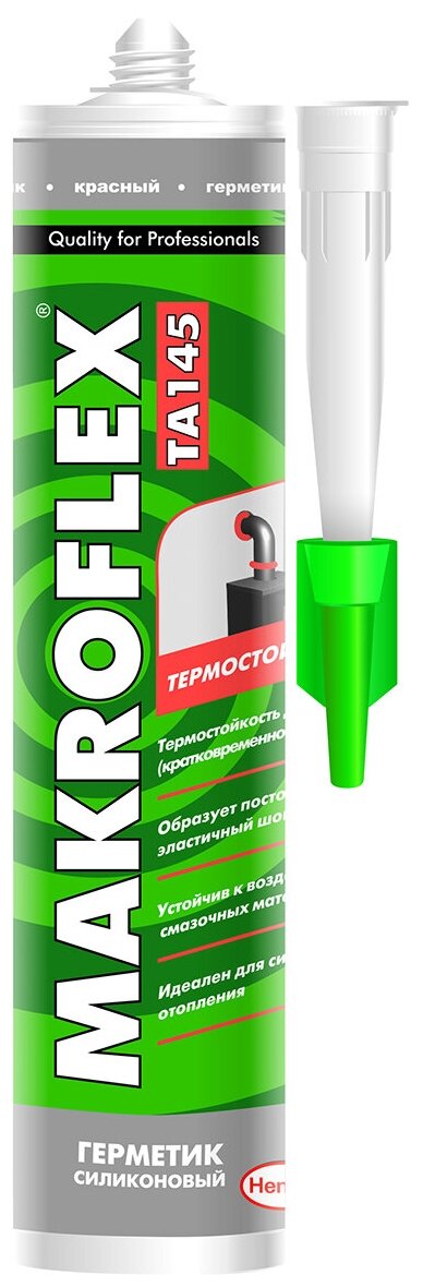 Makroflex Термостойкий - силиконовый герметик для герметизации в местах, подверженных действию высоких температур, термостойкость до до +315 С), остается эластичным после отверждения. *Термостойкость до +260°С (кратковременно до +315°С).*Образует постоянно эластичный шов.*Устойчив к воздействию химикатов, масел и смазочных материалов.*Диэлектрический. Герметизация швов, подвергающихся долговременным температурным воздействия, например, в печах и дымовых трубах.Хорошая адгезия к эмали, стеклу, керамике, дереву, металлам, эмалированным покрытиям. Эластичный, Водостойкий.