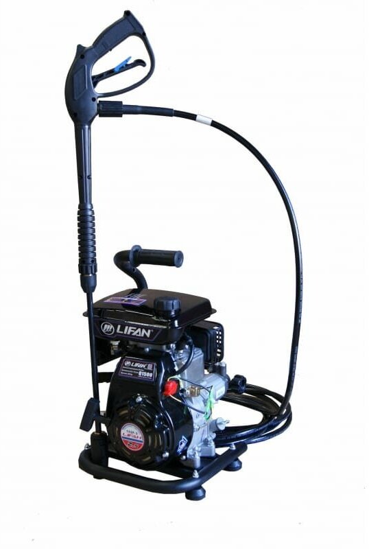 Этот аппарат является самым компактным в линейке моек высокого давления, производимых компанией Лифан. Масса мойки в собранном рабочем состоянии всего 16 килограмм. Такой малый вес и компактные размеры аппарата, позволяют легко разместить его даже в багажнике малолитражного автомобиля. На мойке используется высококачественный насос высокого давления с прямым приводом Annovi Reverberi. Данная модель оснащена только ручным запуском двигателя. Мойка может быть подключена как к водопроводной сети, так и в состоянии работать, выполняя забор воды из различных емкостей, при условии забора воды выше уровня самой мойки. Мойка оснащена четырехтактным бензиновым двигателем Лифан, мощностью 2,5 лошадиные силы, достаточно экономичным и при этом крайне простым в эксплуатации и надежным агрегатом. Давление струи воды на выходе из пистолета достигает 106 килограмм на квадратный сантиметр. Расход воды при максимальном режиме работы достигает 7,6 литров в минуту. Пистолет мойки оснащен распылителем с возможностью выбора формы выходной струи воды.