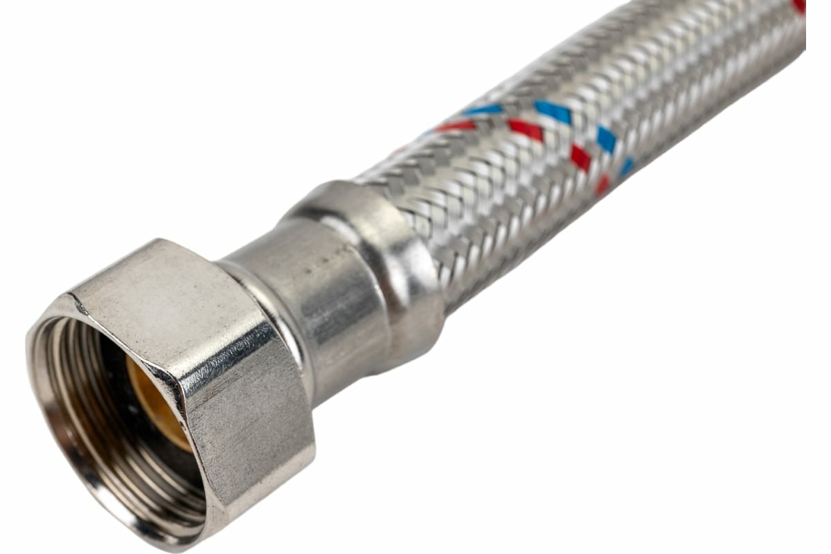 Гибкая подводка для воды 3/4" ТР-сантехника Гигант, используется для подключения бытовых приборов и оборудования к системе водоснабжения или отопления. Представляет собой шланг из EPDM-резины (нетоксичная резина) в оплетке из нержавеющей стали, материал гаек - латунь. Оплетка служит для защиты шланга от механических воздействий и гидроударов, в отличие от обычной подводки серия " Гигант" имеет внутренний диаметр 13 мм для увеличения пропускной способности воды, общая длина подводки 150 см, присоединительный размер 3/4" (три четверти дюйма), резьба внутренняя/внутренняя. Рабочая температура 95°C, рабочее давление 15 Bar, срок службы 10 лет.