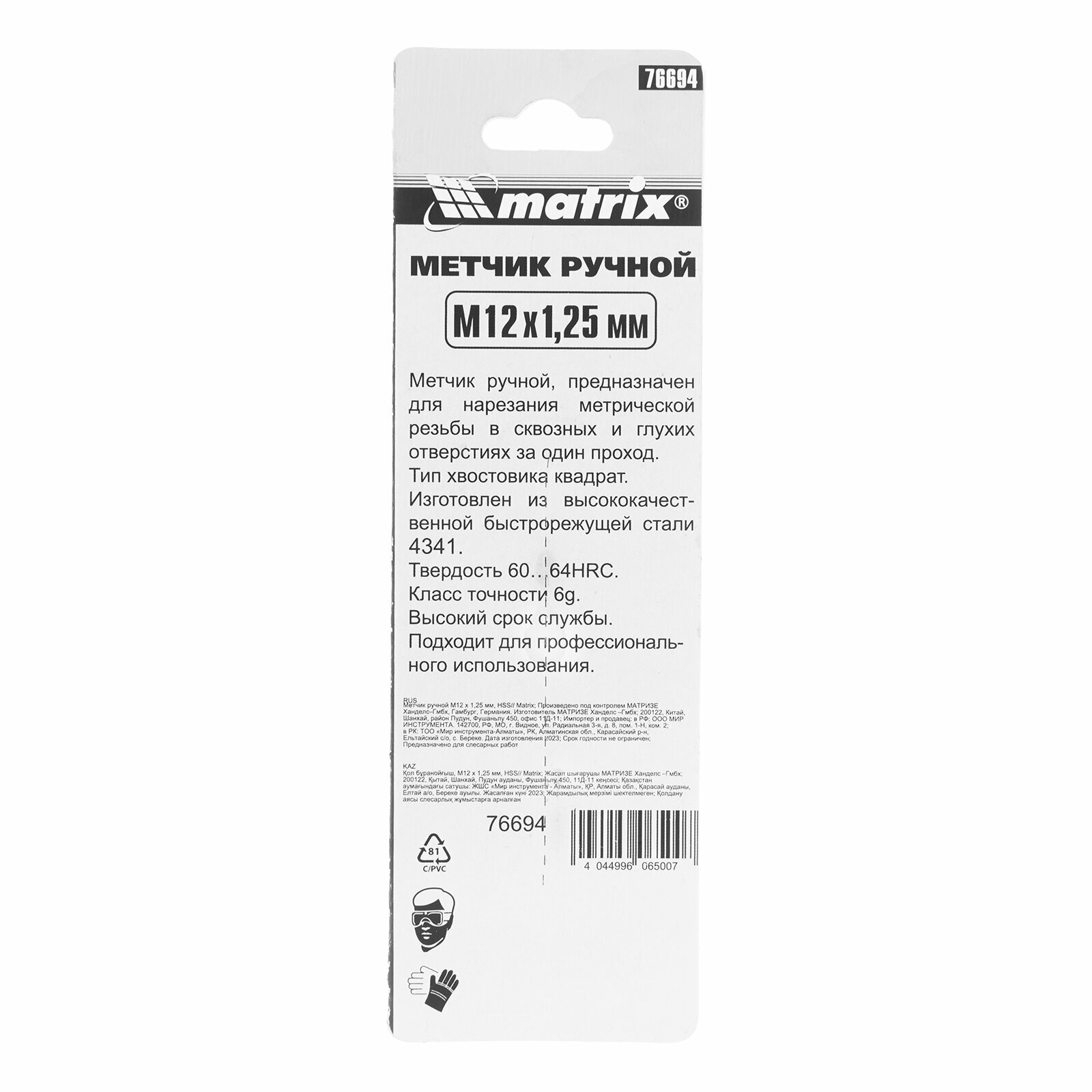 Метчик MATRIX позволяет нарезать резьбу за один проход как в сквозных, так и в глухих отверстиях. Метчик выполнен из быстрорежущей стали Р6М5 и имеет твердость 6064 HRC.