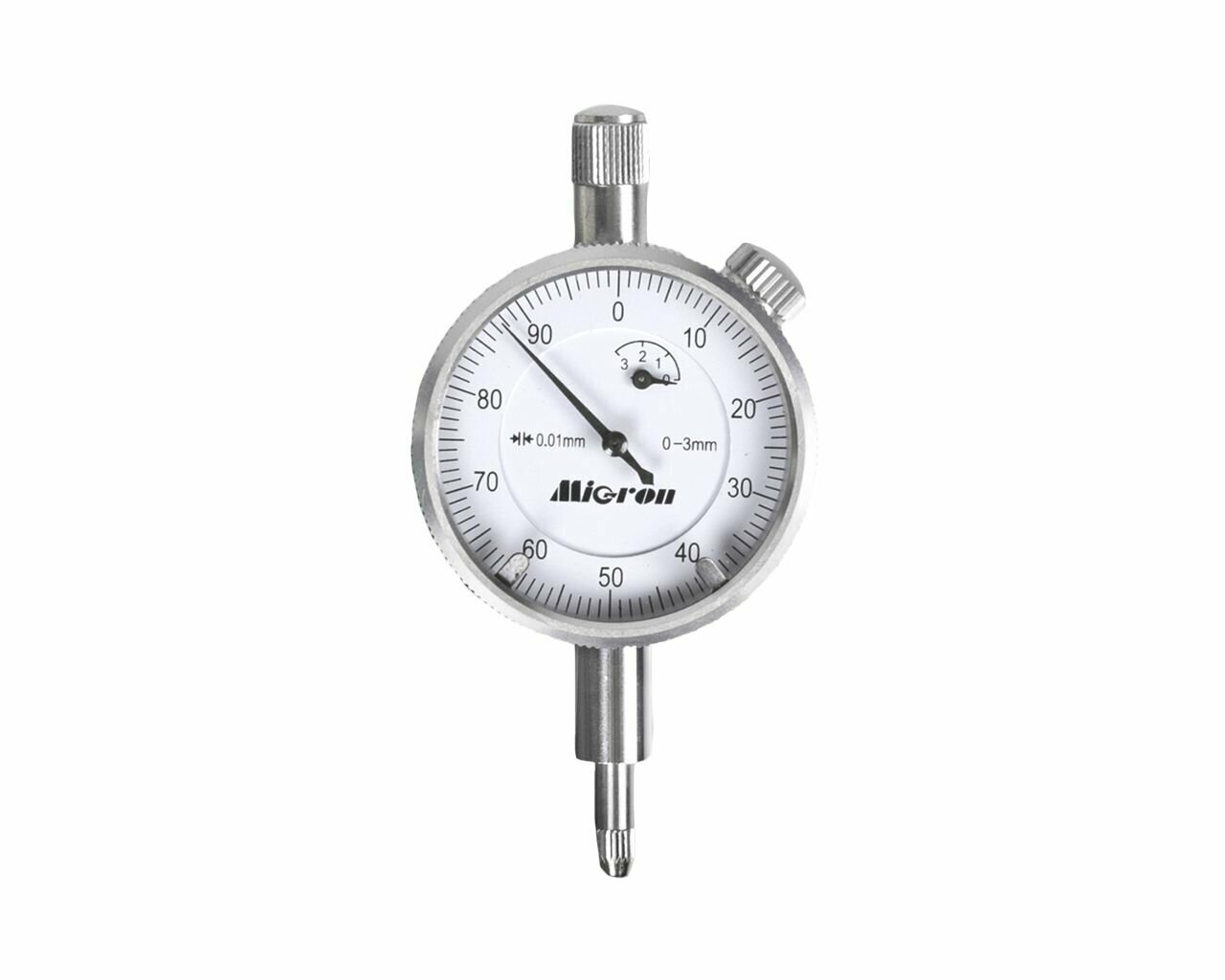 Индикатор часового типа Micron предназначен для измерения линейных размеров абсолютным и относительным методами, определения величины отклонений от заданной геометрической формы и взаимного расположения поверхностей. Тип ИЧ характеризуется перемещением измерительного стержня параллельно плоскости расположения шкалы. Большинство моделей являются многооборотными – имеют большую круговую шкалу и малую, которая отвечает за количество полных оборотов большой шкалы, то есть фиксирует количество целых миллиметров. Принцип работы прибора основан на преобразовании возвратно-поступательного движения измерительного стрежня во вращательные движения стрелки индикатора, что осуществляется за счет реечно-зубчатой и шестереночной передачи. Крепление индикатора ИЧ возможно за присоединительную гильзу. Индикатор выполнен из закаленной стали, измерительная поверхность покрыта твердым сплавом.Прибор поставляется в пластиковом кейсе и снабжен паспортом изделия, где прописаны все нормы эксплуатации.
