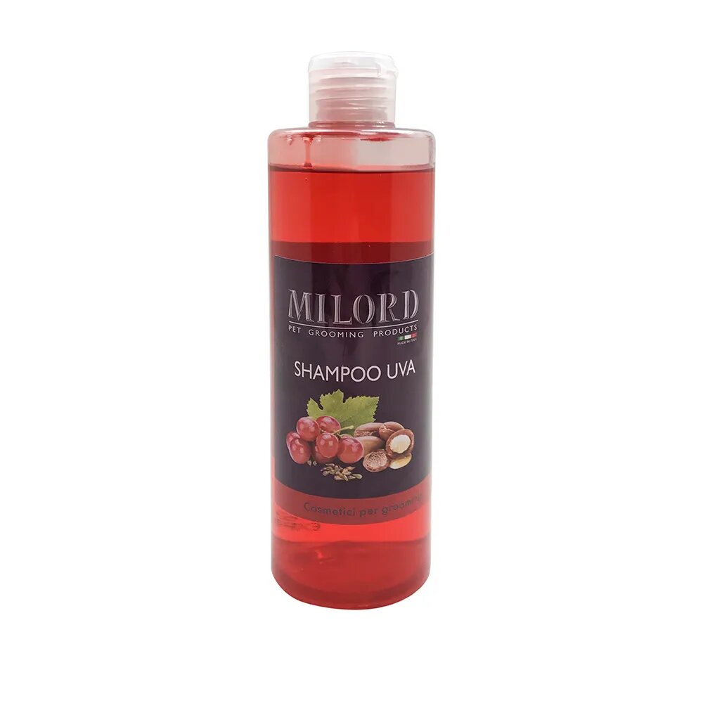 Шампунь для мытья собак и кошек MILORD с пантенолом, экстрактом винограда и маслом арганы. Отлично промывает загрязненную шерсть и кожу животного, благодаря пантенолу и маслу Арганы обладает восстановительным эффектом. Имеет приятный запах винограда, выращенного на Севере Италии. Сбалансированный РН. После шампуня рекомендуется использовать бальзам.