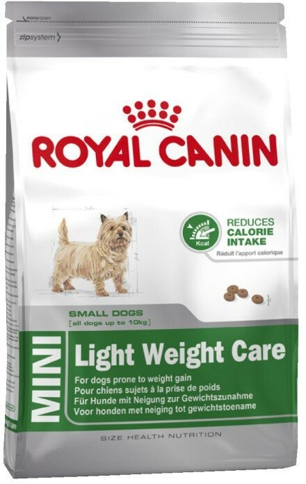 Сегодня многие домашние животные имеют избыточный вес, который создает чрезмерную нагрузку на суставы и негативно влияет на общее состояние здоровья. Помогите своей собаке оставаться в хорошей форме с помощью полнорационного продукта ROYAL CANIN® Light Weight Care Mini. ROYAL CANIN® Light Weight Care Mini подходит для собак весом до 10 кг. Уникальная формула продукта отличается высоким содержанием протеина, что позволяет поддерживать мышечную массу животного, при этом снижая количество калорий в рационе и потребление жиров. Адаптированная формула продукта со сниженным содержанием жира помогает собаке поддерживать активность, снижать нагрузку на суставы, а также избежать других проблем со здоровьем, связанных с лишним весом. Сочетание двух видов клетчатки – растворимой и нерастворимой – помогает быстро формировать чувство сытости, а также способствует здоровому и регулярному кишечному транзиту и лучшему пищеварению. Полиненасыщенные Омега-3 кислоты обладают противовоспалительным эффектом, поэтому формула ROYAL CANIN® Light Weight Care Mini обогащена длинноцепочечными Омега-3 ПНЖК – ДГК и ЭПК – для поддержания здоровья суставов. Продукты гаммы Light Weight Care выпускаются как в форме хрустящего сухого корма, так и в виде ароматного паштета. Оба продукта покрывают все потребности животного в питательных веществах и идеально дополняют друг друга. Рекомендуем сочетать паштет с аппетитными гранулами. Доказанная эффективность: уменьшение потребления жира на 31% **B сравнении с профилактическим продуктом (Mini Adult) КАК ЕЩЕ ВЫ можете помочь своей собаке? Поддерживайте активность своей собаки прогулками и подвижными играми. В качестве поощрения во время тренировки используйте вместо лакомств крокеты продукта, которым вы ее кормите. Очень важно соблюдать размер порции, указанный на упаковке. Если у вас возникли какие-либо вопросы или опасения относительно здоровья собаки, обратитесь к ветеринарному врачу. Открытую упаковку хранить в сухом помещении при комнатной температуре не более 1 месяца, использовать ZIP.