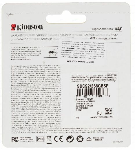 Карты памяти Canvas Select Plus microSD компании Kingston совместимы с устройствами Android и обладают производительностью класса A1. Они обеспечивают более высокую скорость и емкость, ускоряя загрузку приложений. Выберите для хранения своих фотографий и видео карту памяти подходящей емкости — доступны варианты до 512 ГБ1. Обладая высокой производительностью, скоростью и прочностью, карты памяти Canvas Select Plus microSD обеспечат надежное выполнение таких задач, как создание и обработка фотографий высокого разрешения или съемка и редактирование видео в формате Full HD. Карты памяти Kingston Canvas прошли испытания на прочность в самых суровых средах, поэтому их смело можно брать куда угодно с уверенностью, что ваши фотографии, видео и файлы будут в безопасности. Предоставляется гарантия на весь срок эксплуатации.