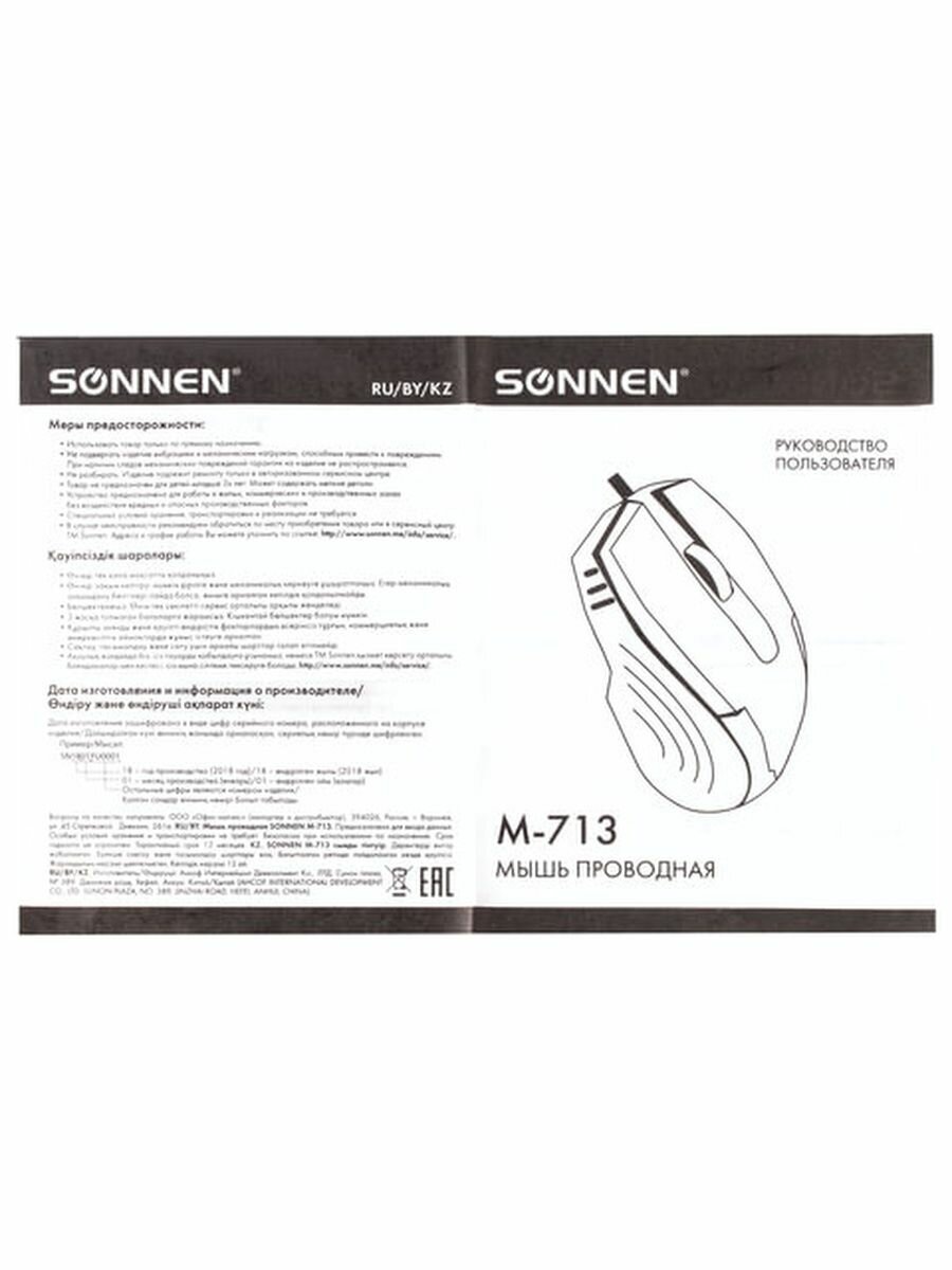На сегодняшний день товар «Мышь проводная SONNEN М-713 USB 1000 dpi 2 кнопки + колесо-кнопка оптическая черная 512637» можно купить с кешбеком в 1 магазине: Яндекс.Маркет