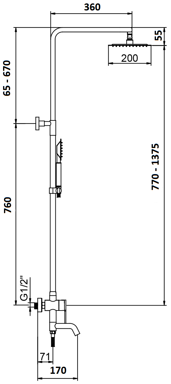 | В комплекте | верхний душ, держатель, штанга, смеситель, душевой шланг, лейка ручная, эксцентрики (3/4"х1/2"), излив |