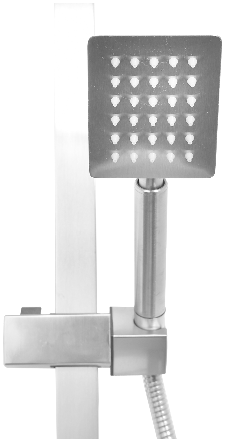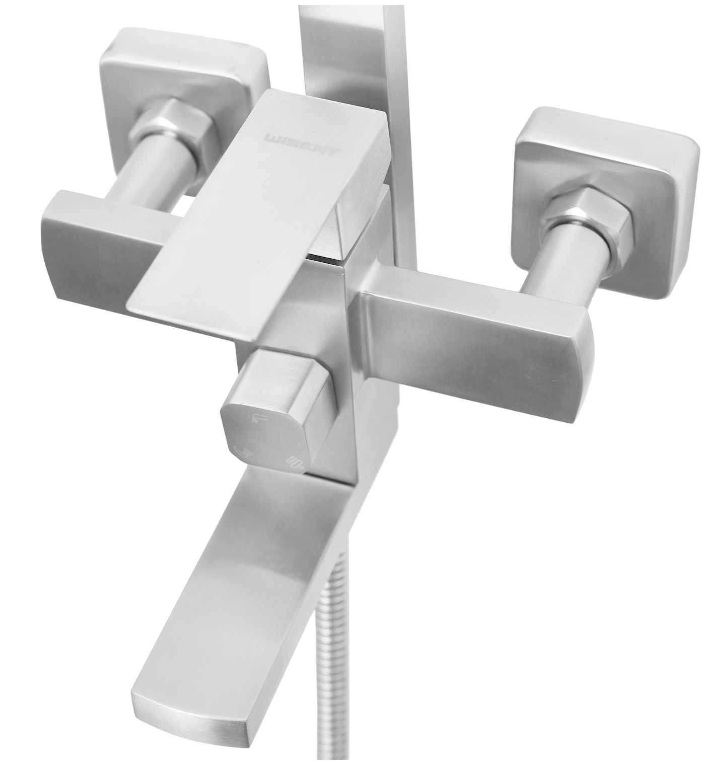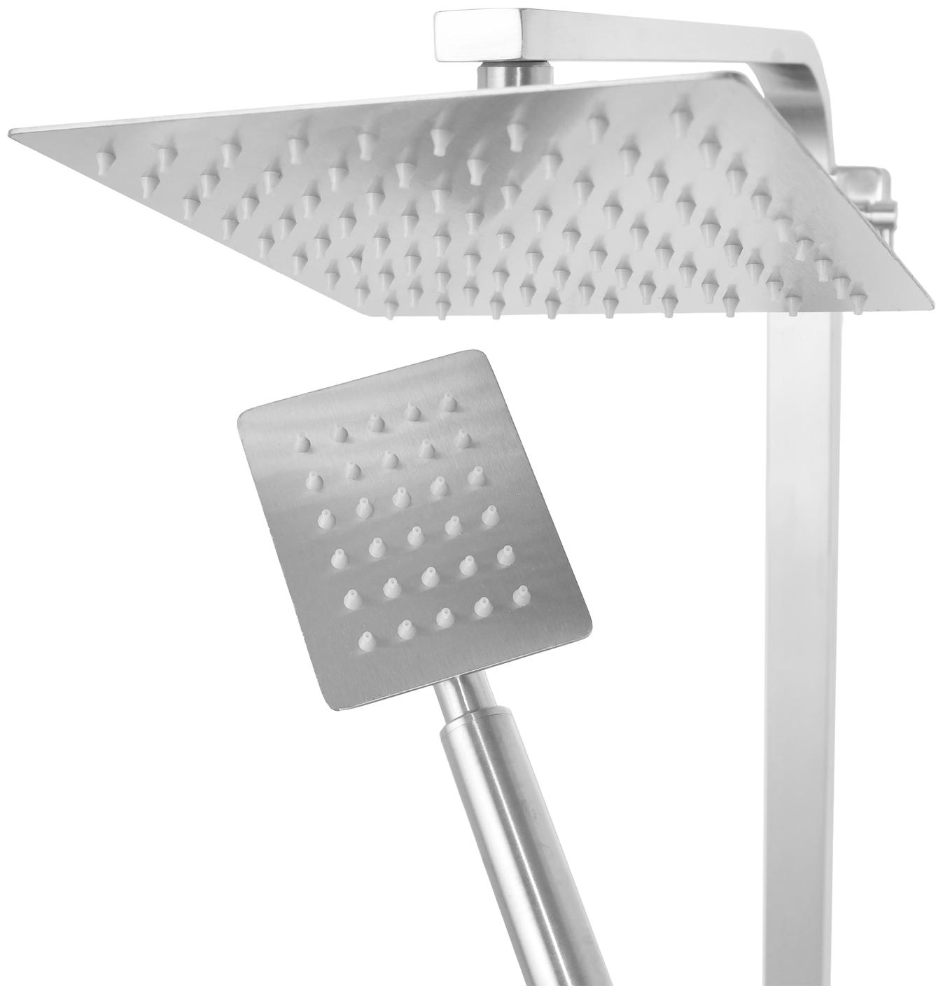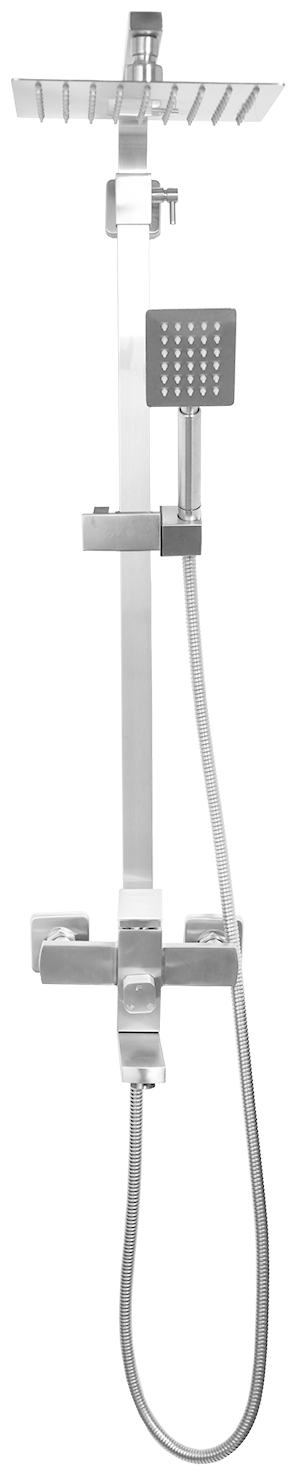 Душевая стойка Wisent со смесителем, квадратным тропическим душем и лейкой — это современная конструкция, которая обеспечивает комфортное принятие душа.