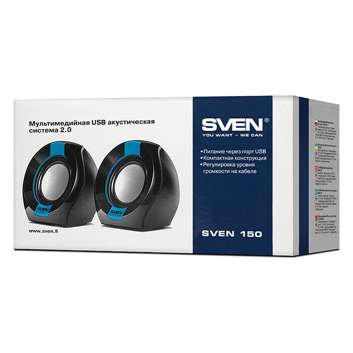 Акустическая система 2.0 SVEN 150 – это громкий и качественный звук, интересный дизайн, и, что особенно приятно,– доступная и привлекательная цена.