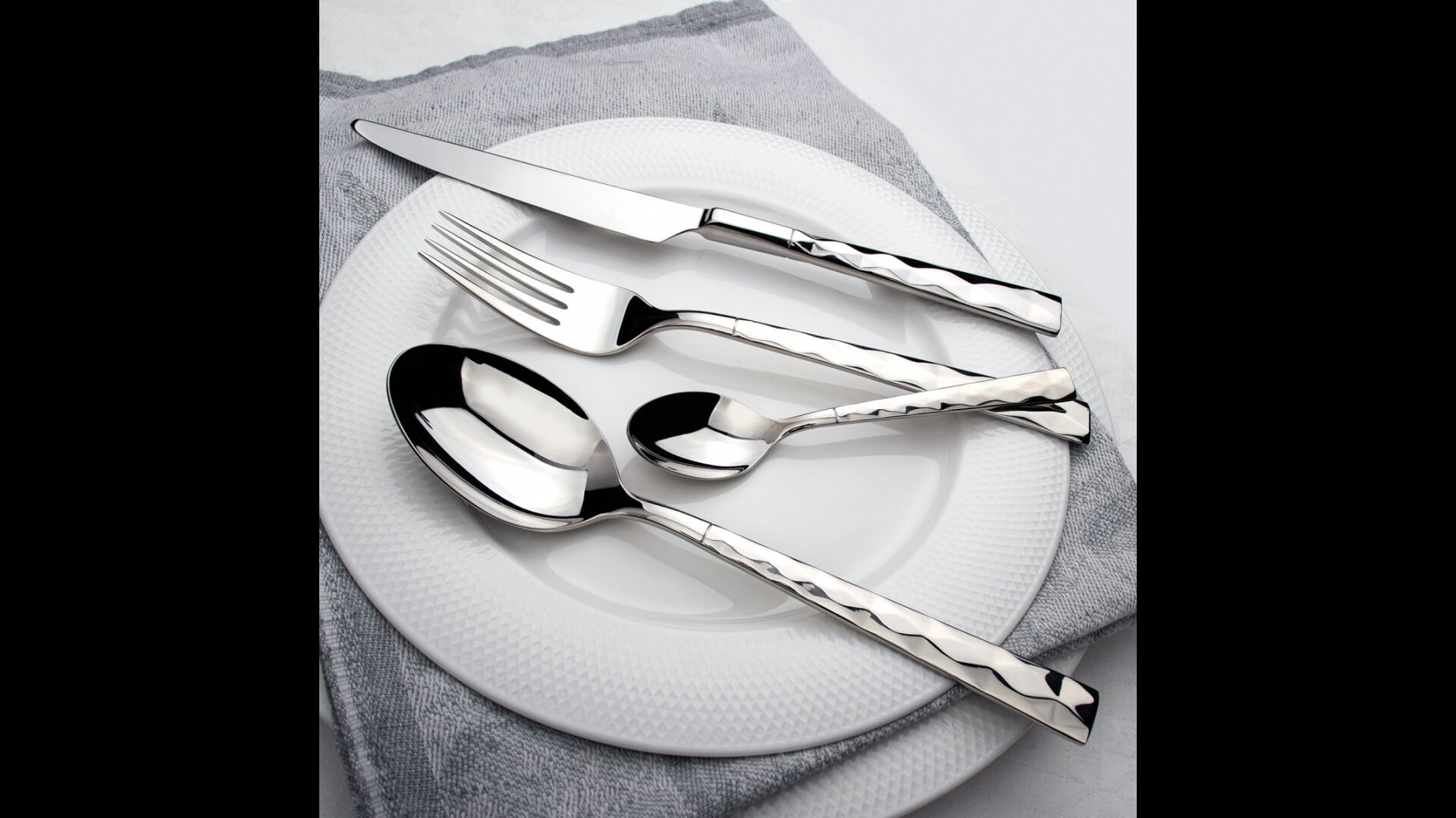 | Прочие особенности и свойства | Столовый прибор (кроме лезвий ножей) изготовлен из высококачественной нержавеющей стали марки 18/10: прочен и устойчив к деформации; обладает высокими антикоррозийными свойствами; устойчив к воздействию кислот и щелочей; не изменяет вкусовые качества, запах и цвет пищи, т.к. не вступает реакцию с ее компонентами; легко моется Лезвия ножей выполнены из высококачественной легированной стали марки 420S37 (2Cr13): максимально прочны и устойчивы к деформации; обладают высокими антикоррозийными свойствами; устойчивы к притуплению Специальные утолщения на местах наибольшего износа приборов |