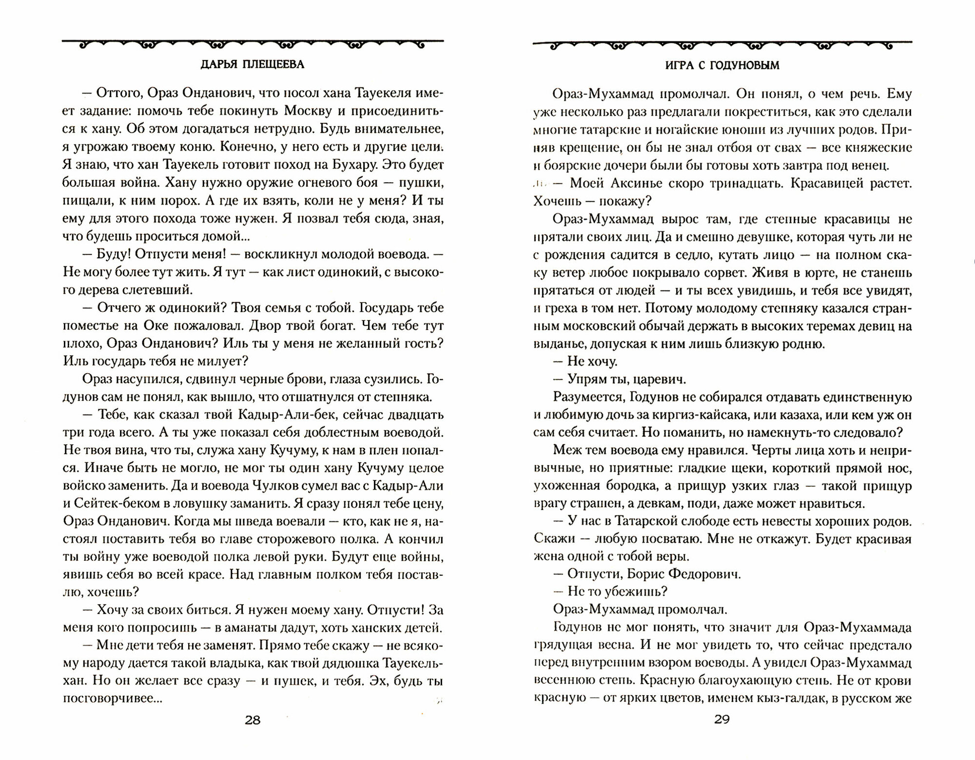 "Игра с Годуновым" – прекрасный исторический роман с элементами приключенческого романа и детектива, это цельная, чистая, красивая, динамичная, глубокая и психологически достоверная вещь. Кроме того, это глубоко христианская книга. Как всегда у Дарьи Плещеевой, читатель найдет здесь живых героев, интересный исторический сюжет и важные нравственные темы: в чем заключаются любовь, верность и прощение, что такое справедливость и милосердие и кто может "положить душу свою за други своя".