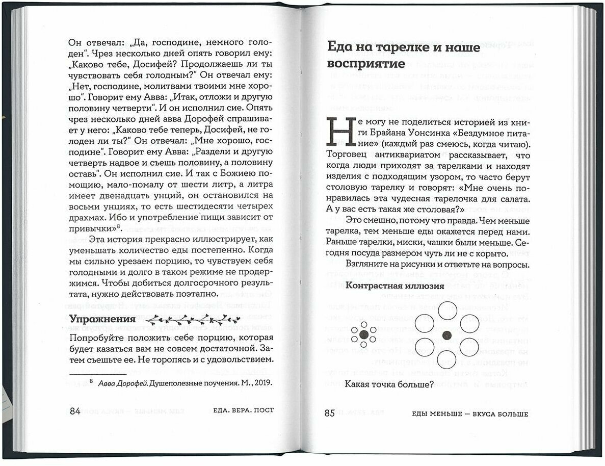 У этой книги очень хороший, жизнерадостный настрой. Нет, всё в рамках православного мировоззрения, ведь книга "Еда. Вера. Пост" даже рекомендована Издательским советом РПЦ, но, пожалуй, я впервые встречаю книгу, в которой самым замечательным образом соединены - сбалансированы - советы по правильному питанию во время поста и духовные советы, приведено множество цитат из высказываний святых отцов. Это очень нужная, актуальная книга. Ведь часто у нас говорится только о духовном посте, с минимальным вниманием к состоянию тела, а всё прочее сведено в книги "Рецептов постного стола". Рита Мэддэн призывает заботиться о здоровье для сохранения и развития здоровья духовного. В каждой главе даются интересные упражнения и задания, а в конце книги есть и рецепты. Вся книга пропитана любовью к Богу и благодарностью к Нему, автор с большим знанием дела говорит и о практике поста (во всех его аспектах), и о поддержании здоровья.