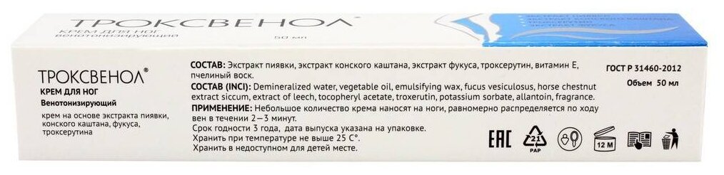 | Состав | экстракт пиявки, экстракт конского каштана, троксерутин, экстракт фукуса, пчелиный воск, витамин Е |