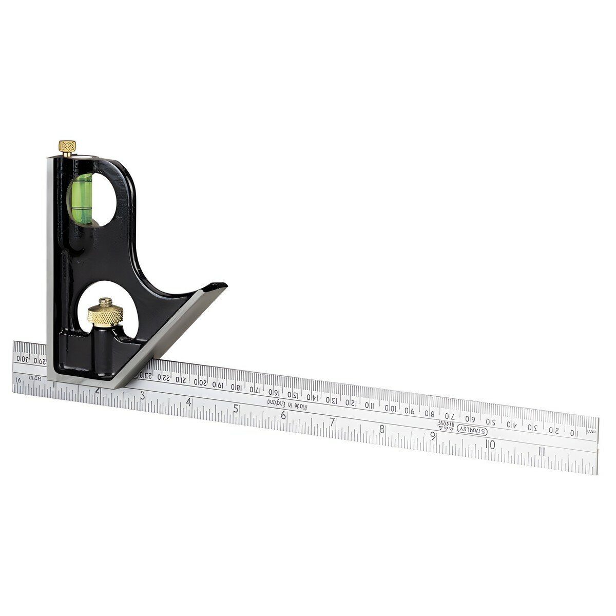 | Дополнительно | Все поверхности фрезерованы для обеспечения высокой точности Выгравированные шкалы в мм и см и в дюймах и 1/8" и 1/16" Может использоваться в качестве угольника, угольника для откладывания углов 45°, глубиномера и спиртового уровня Профессиональный комбинированный угольник с литым основанием для высокой точности и продолжительного срока службы Класс точности I |