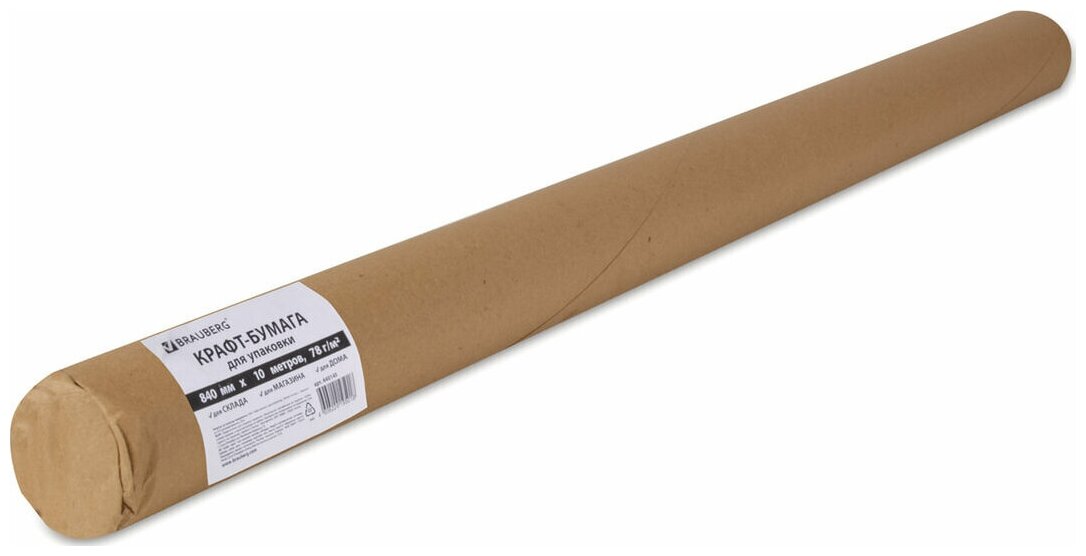 Крафт-бумага в рулоне 840 мм х 10 м плотность 78 г/м2 BRAUBERG 440145
