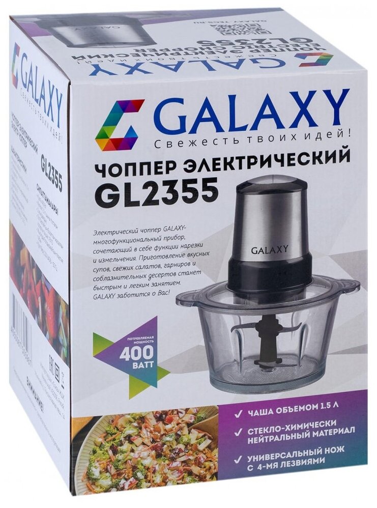 Измельчитель Galaxy GL2355 – имеет стильный современный дизайн! Прорезиненные ножки исключают соскальзывание прибора с рабочей поверхности. Измельчитель предназначен для измельчения и шинковки овощей, фруктов и других продуктов в домашних условиях. Он безопасен в использовании и исключает возможность микротравм. Удобное и понятное механическое управление позволит вам с легкостью пользоваться этим прибором.