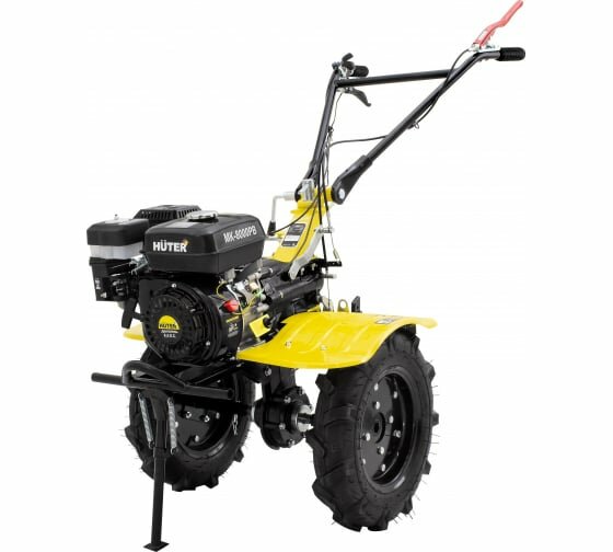 Двигатель имеет блокирующий датчик аварийного уровня масла в картере. Поршневая группа ДВС с хромовым покрытием. Эффективный маслонаполненный воздушный фильтр карбюратора. Система автоматической регулировки оборотов двигателя, в зависимости от нагрузки на навесное оборудование. Для защиты оператора на HUTER MK-8000PВ установлены широкие крылья, исключающие выброс из-под фрез посторонних предметов и грязи.