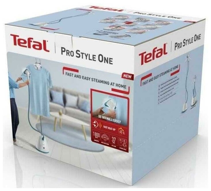 | Прочие особенности и свойства | Отпариватель Tefal Pro Style One моментально удаляет любые складки, даже самые стойкие, и бережно отпаривает все типы ткани. Pro Style One разогревается всего за 45 секунд и идеально подходит как для разового отпаривания одежды перед выходом, так и для длительного ухода за большим количеством вещей. Благодаря компактному размеру и отсутствию гладильной доски этот эффективный отпариватель удобно и легко использовать каждый день, чтобы освежить и продезинфицировать ваши вещи и другие изделия из ткани, например, диван или шторы. Съемный резервуар для воды позволяет использовать устройство в любом месте в доме. Благодаря мощности 1800 Вт и постоянному пару до 37 г/мин отпариватель Tefal Pro Style One сэкономит ваши силы и время и подарит качественный уход за вещами. |