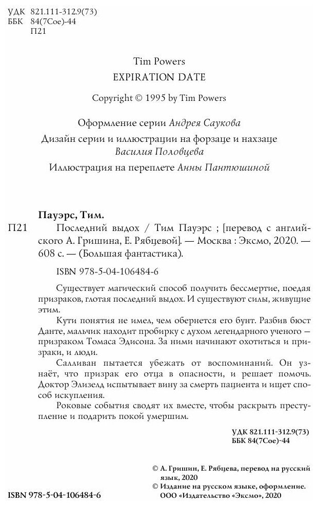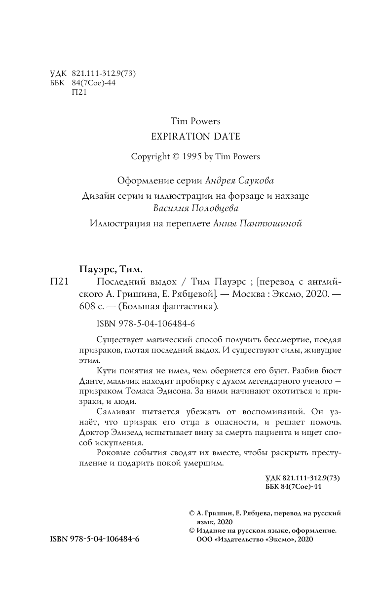 Сервис сравнения цен СкидкаГИД предлагает сравнить цены на товар «Книга: Последний выдох (Тим Пауэрс); Издательство Fanzon, 2020»
