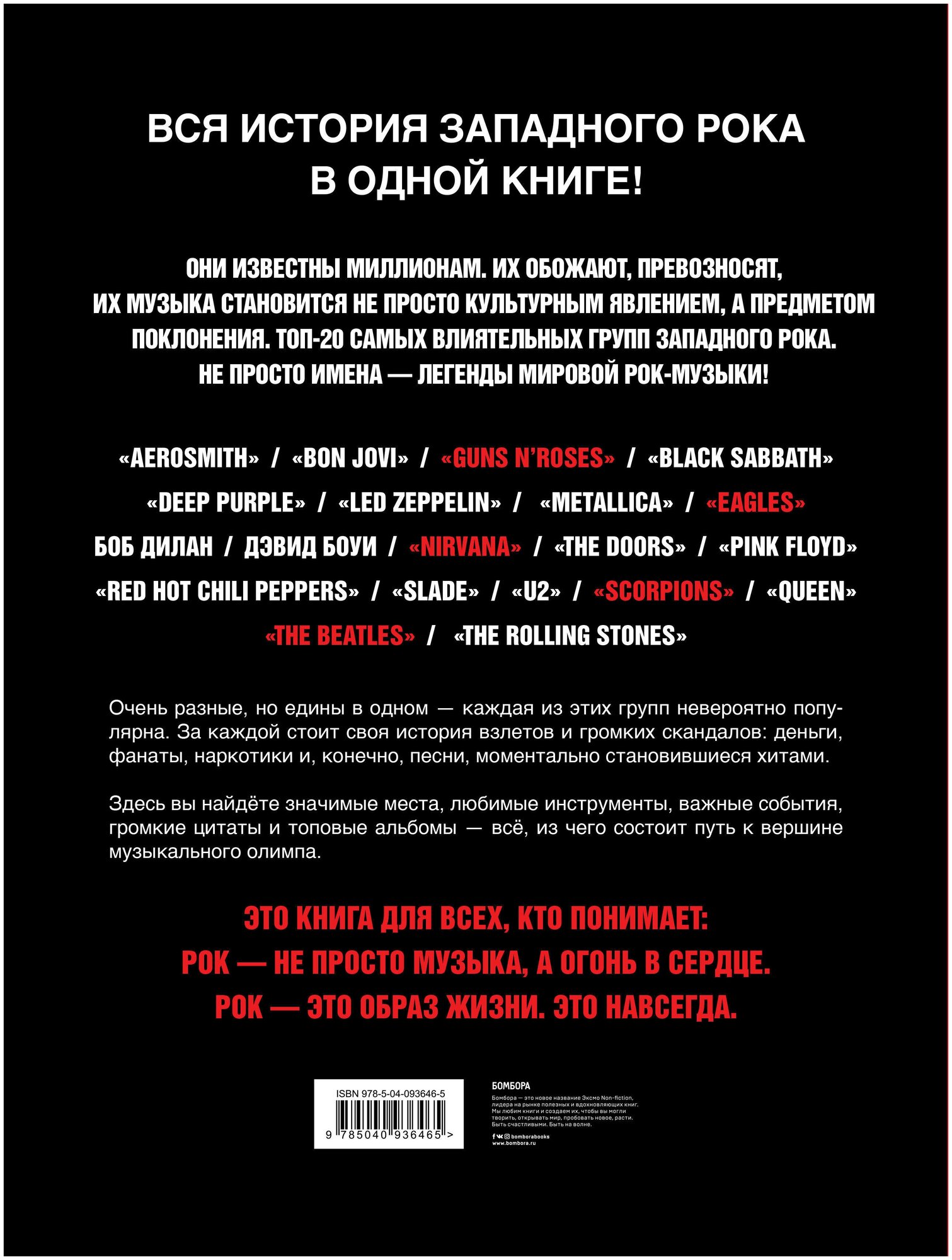 Они известны миллионам. Их обожают, превозносят, их музыка становится не просто культурным явлением, а предметом поклонения. Даже уйдя со сцены, они не утрачивают известности. В самом деле, кто же не знает легендарных, бессмертных "Битлов"? А группа Scorpions, созданная порядка полувека назад, до сих пор собирает полные залы! Многие из них стали голосом своего поколения, обеспечив себе вечную славу на музыкальном олимпе.В книге собраны топ 20 самых влиятельных групп западного рока: от Queen до Metallica, от Deep Purple до Black Sabbath, от Nirvana до Bon Jovi.Не просто имена — легенды мировой рок-музыки!Очень разные, но едины в одном — каждая из этих групп невероятно популярна. В этой книге вы познакомитесь с их историей и настоящим, с культовыми альбомами и величайшими хитами. И — как знать? — возможно, по-новому оцените их незаурядное творчество.Это книга для всех, кто понимает: рок — не просто музыка, а огонь в сердце. Рок — это образ жизни. Это навсегда.