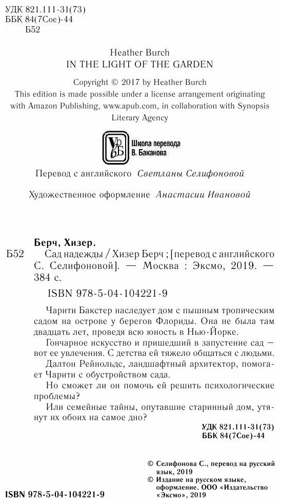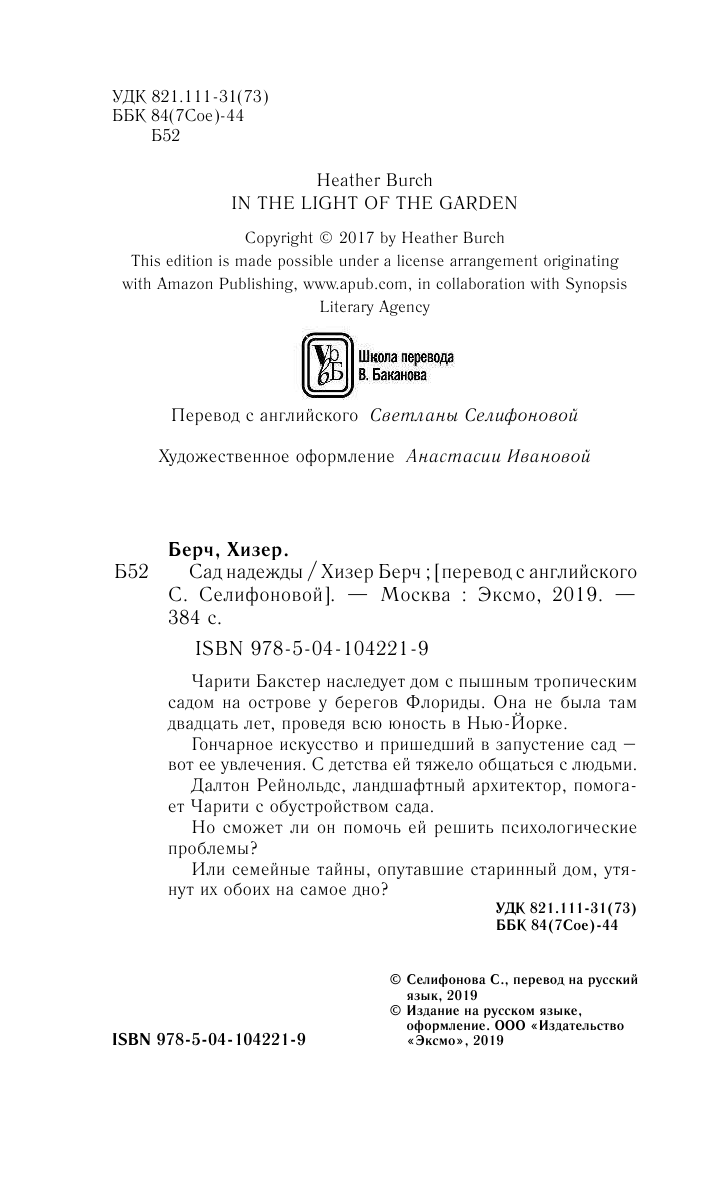 Книга: Сад надежды (Берч Хизер); ООО "Издательство "Эксмо", 2019