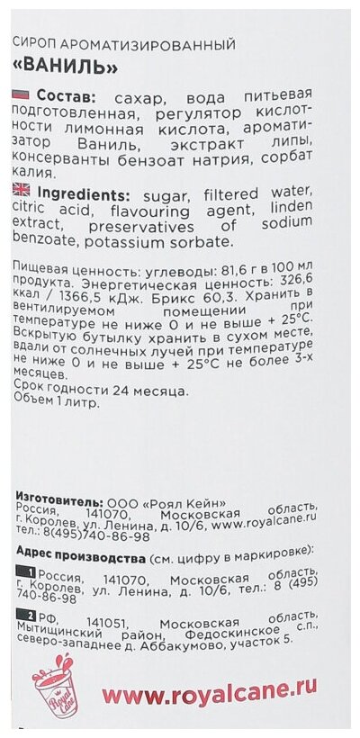 При слове "Ваниль" ни у кого не возникает ошибочных ощущений. Натуральный одноименный сироп Royal Cane в полной мере передаст знакомый аромат и вкус с тонкой ноткой пряности.