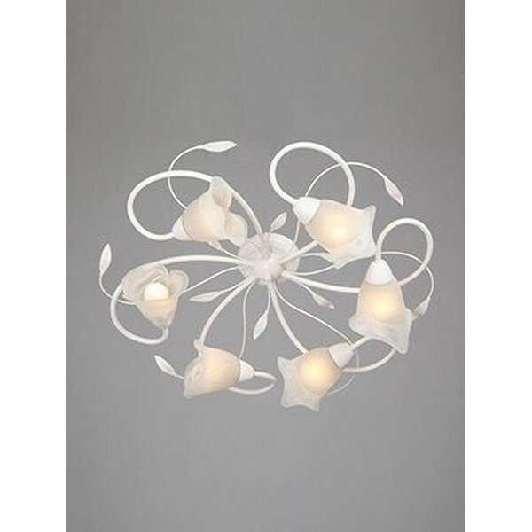 Изящная декоративная люстра привнесет в обстановку спальни или гостиной нежные романтичные ноты. Модель напоминает эффектную флористическую композицию в светлых тонах. Плафоны выполнены в виде цветочных бутонов с фигурными краями из деликатно рассеивающего свет матового стекла. Рожки-стебли и листья – из прочного металла с устойчивым к коррозии и истиранию покрытием. Светильник с изысканным дизайном удачно впишется в интерьеры: прованс, арт-деко, модерн и классический.