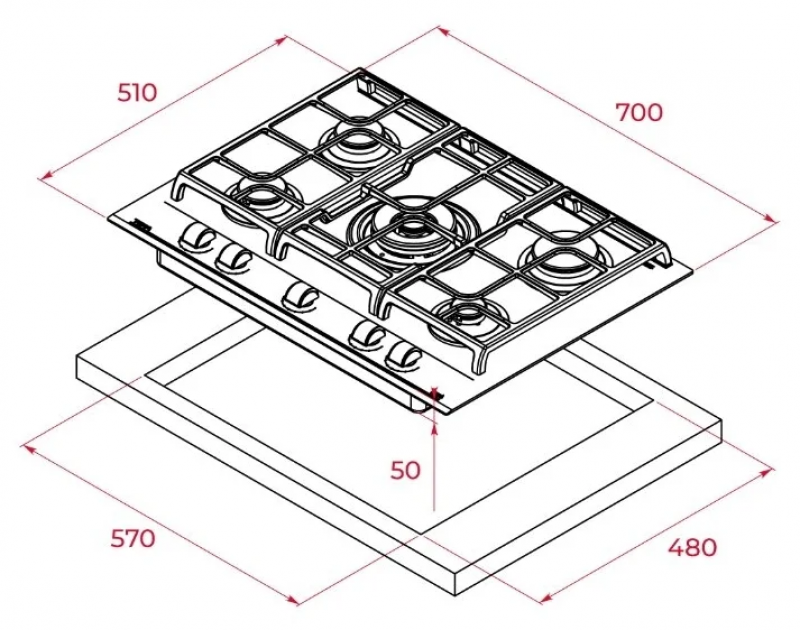 Тип товара: Встраиваемая газовая варочная панель