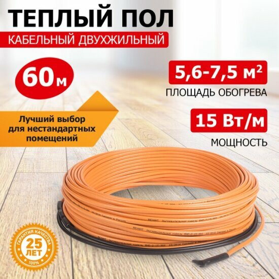 В комплектах теплых полов REXANT используется кабель с удельным тепловыделением 15 Вт/пог.м