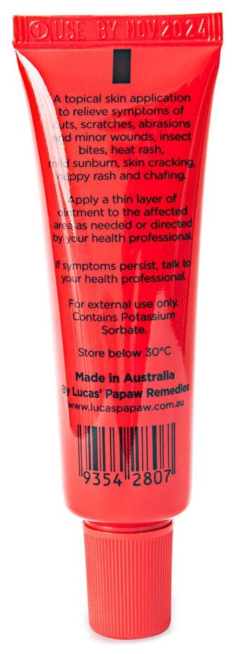 Состав: fermented papaw 3.9%, petroleum jelly and wax, potassium sorbate 0.01%, gum balsam