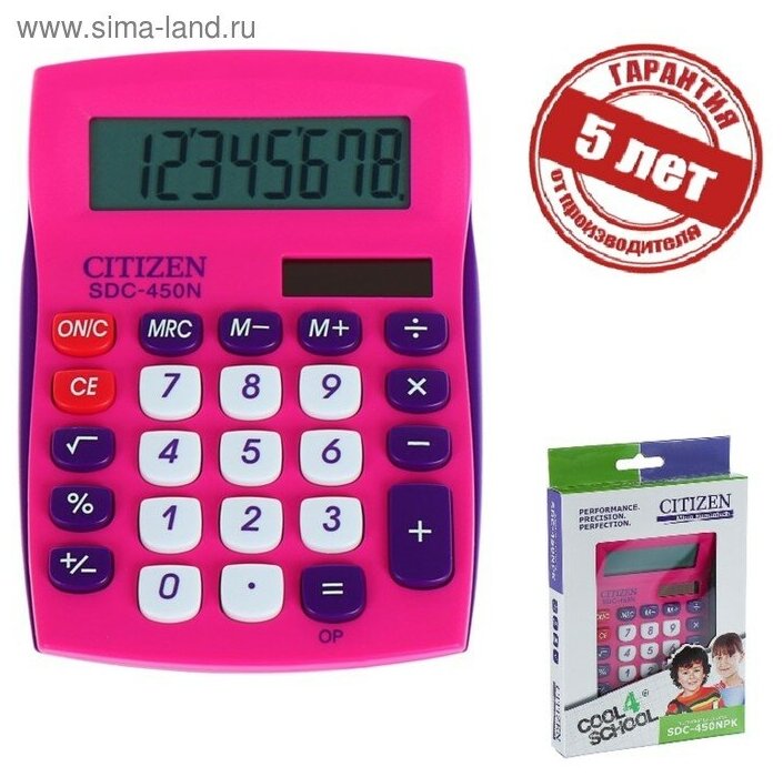 Калькулятор настольный Citizen SDC-450NBL-CFS 8-разрядный синий SDC-450NBLCFS